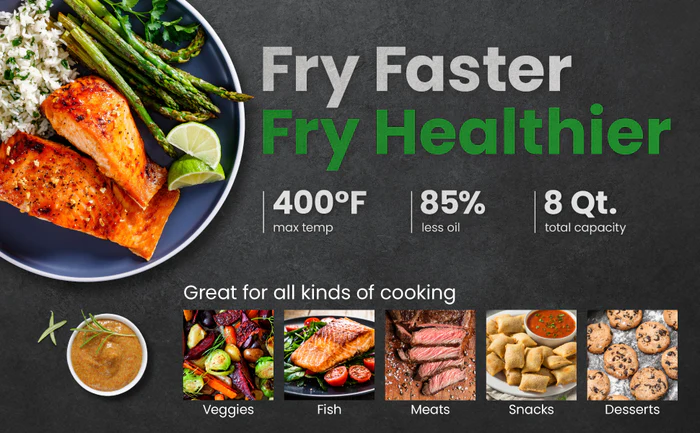 Air frying uses up to 75% less fat compared to traditional deep frying. The result? Crispy, golden food that’s better for your health.